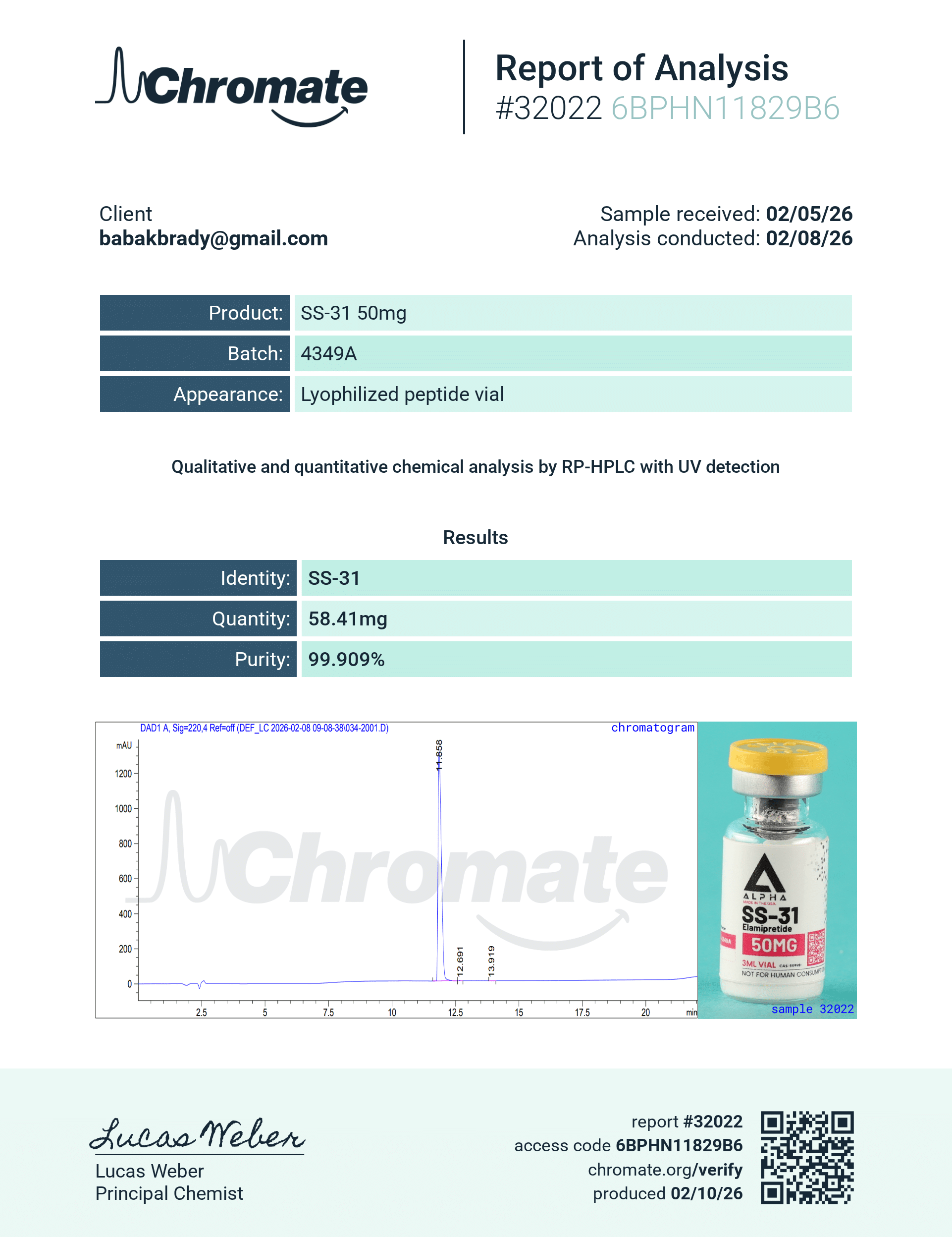 SS-31 (also known as Elamipretide) is a synthetic tetrapeptide (D-Arg-Dmt-Lys-Phe-NH₂) studied for its ability to target and stabilize mitochondrial membranes while reducing oxidative stress. It has become a focal compound in mitochondrial and aging research for its role in enhancing ATP production, minimizing reactive oxygen species (ROS), and supporting cellular energy efficiency in preclinical models.